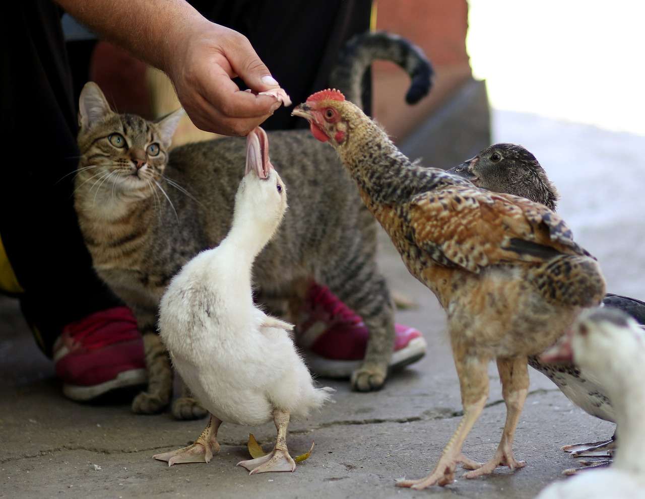 Aunque hay algunas excepciones, puede alimentar tanto a los pollos como a los patos con alimento regular para pollos. A diferencia de los pollos, los patos no comen en exceso. Por lo tanto, puede alimentarlos dos veces al día o puede alimentarlos libremente.